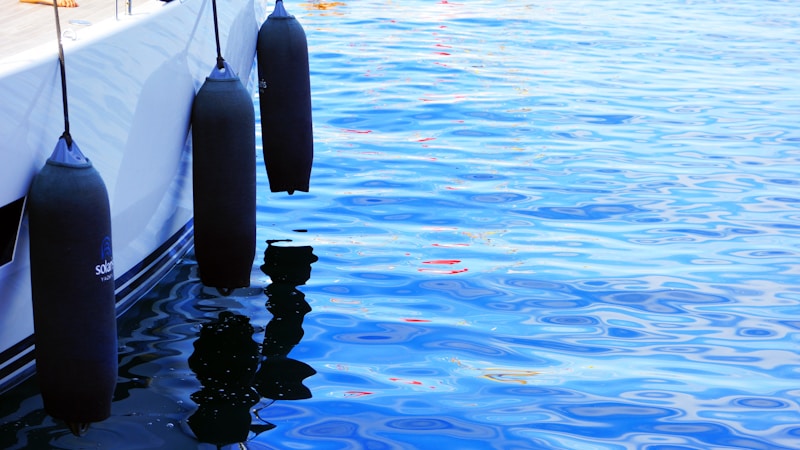 Four heavy-duty boat fenders, 17" x 6.5". Dark blue color with matching fender lines. Used but in great shape — no deflation issues.
