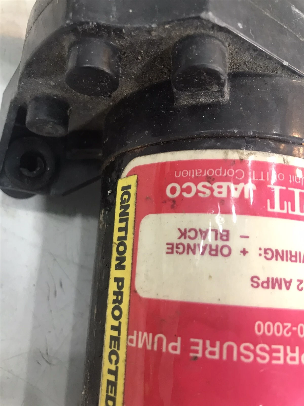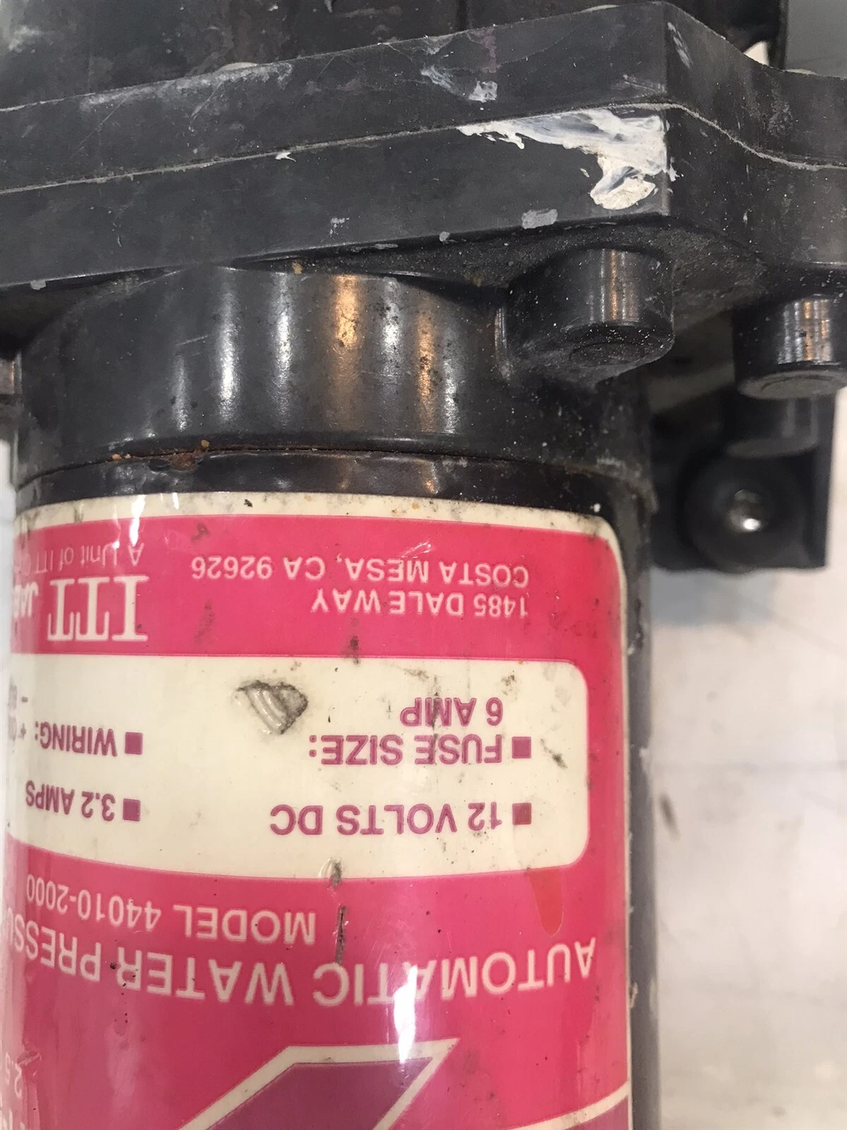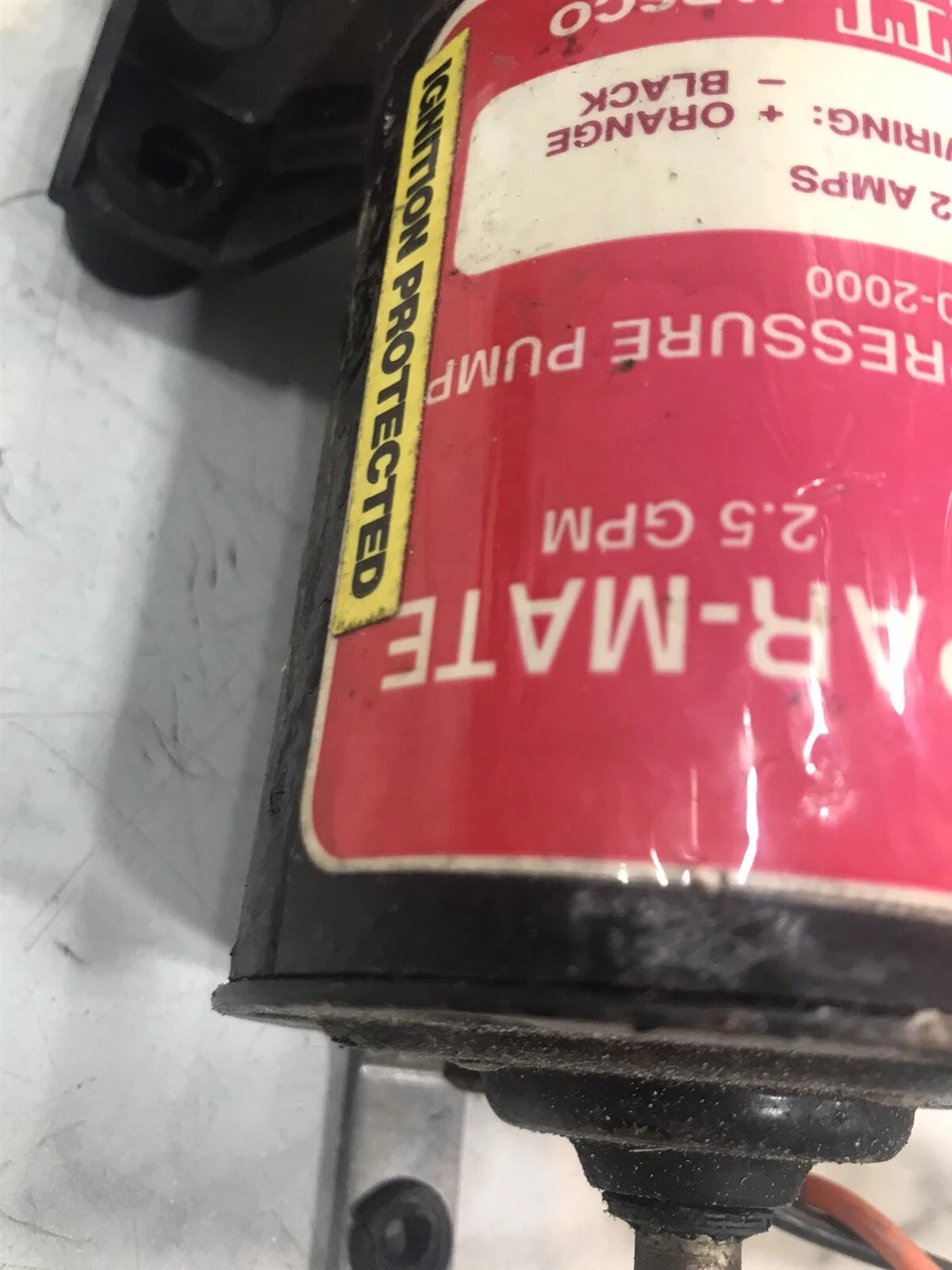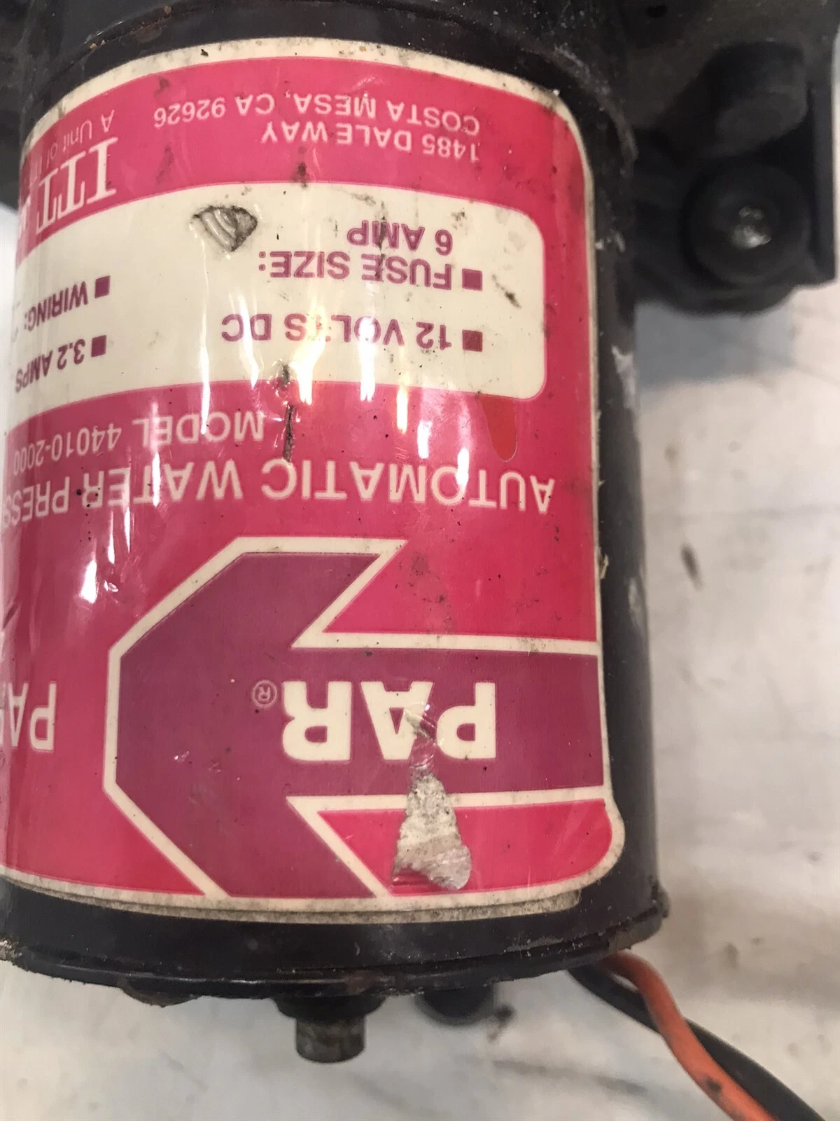 Rule PAR-2 automatic bilge pump designed for small to medium vessels. Features 2.5 GPM capacity at 12V DC operation with automatic float switch activation. Unit shows wear and age with visible corrosion and label degradation, consistent with long-term marine use.